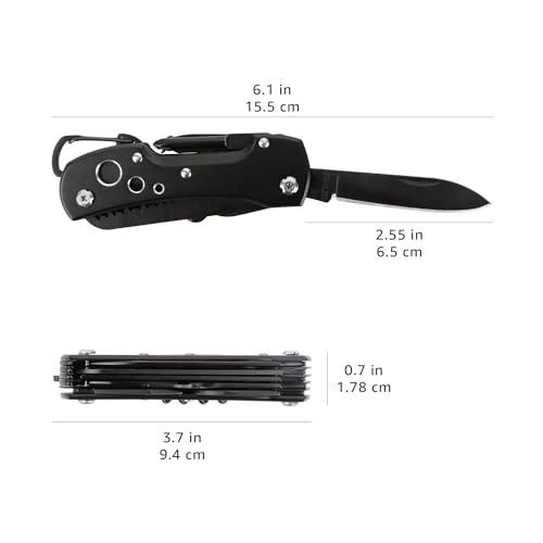 Amazon Basics 15-in-1 Stainless Steel Multitool Pocket Knife with Sheath, Black