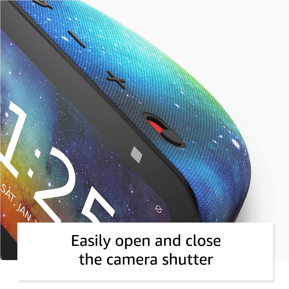 - Designed to protect your privacy – Amazon is not in the business of selling your family’s personal information to others. Built with multiple layers of privacy controls, including a mic/camera off button and a built-in camera shutter.