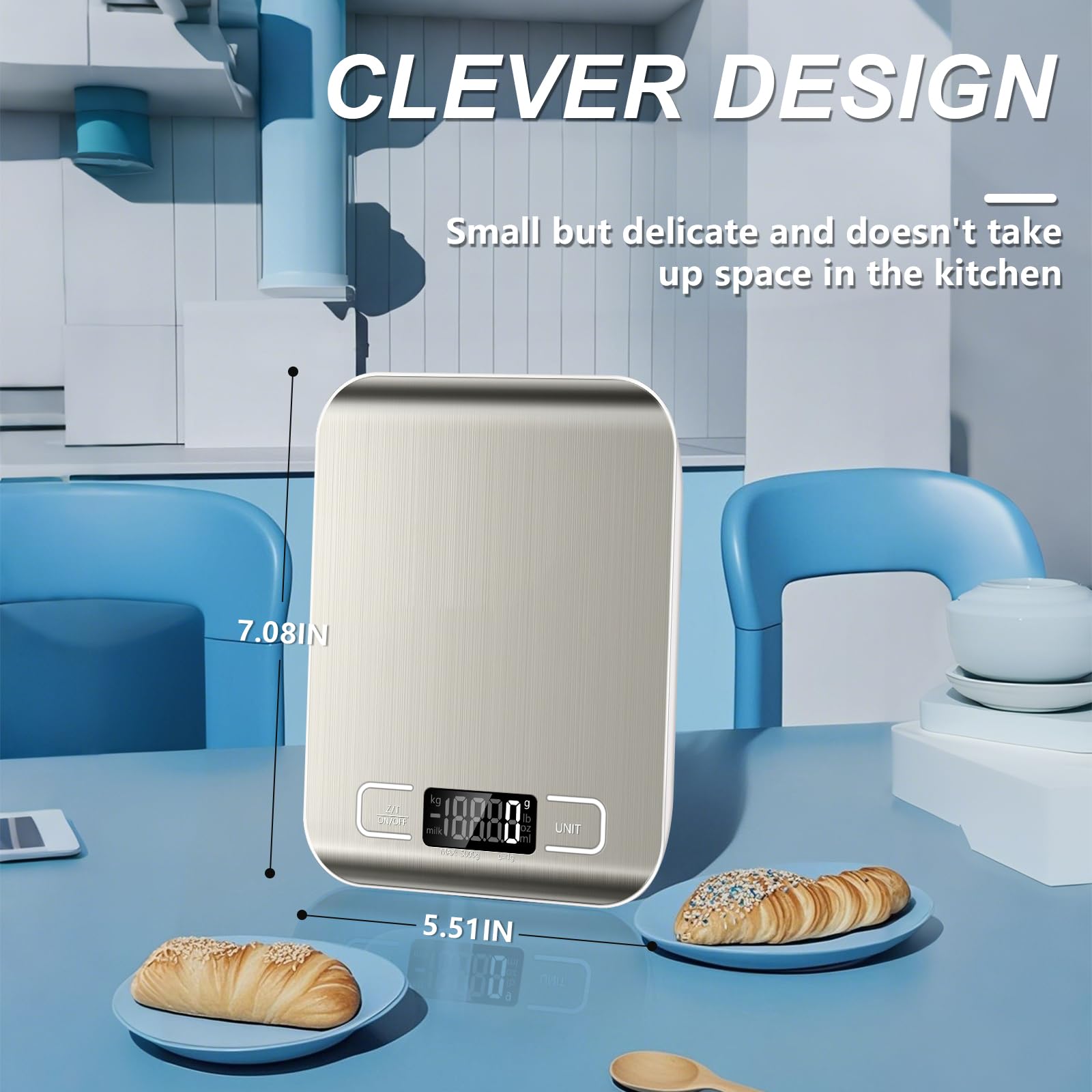 - [SIMPLE BUT NOT SIMPLE]–The exquisite and compact kitchen food scale is made of high-quality stainless steel. Compared with food scales on the market, it is more waterproof and wear-resistant, and can easily wipe off any stains on the surface to keep it clean and maintained. In order to prevent edge collisions, we adopt a rounded corner design and four anti-slip bases, which increase safety and stability and bring you a more convenient lifestyle.