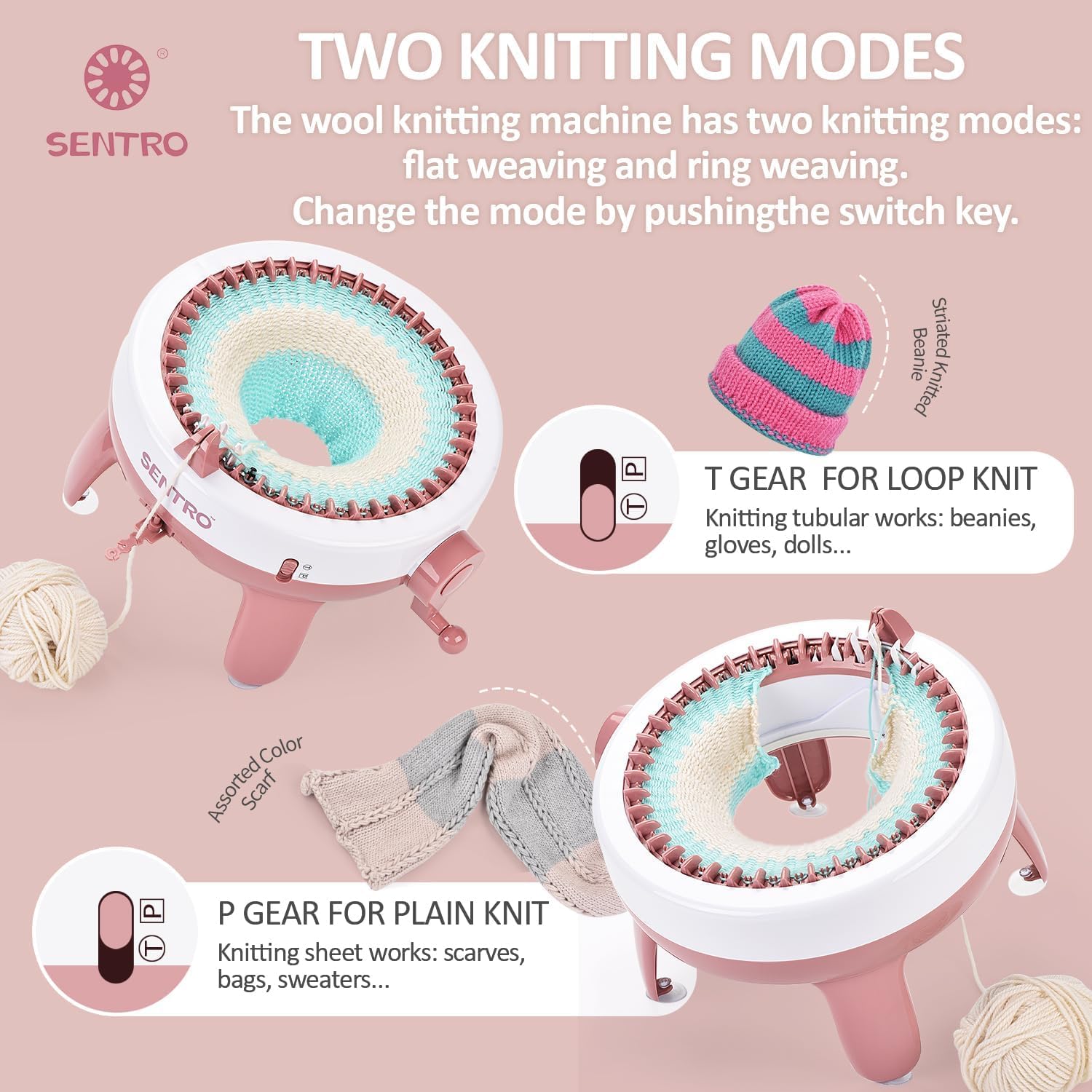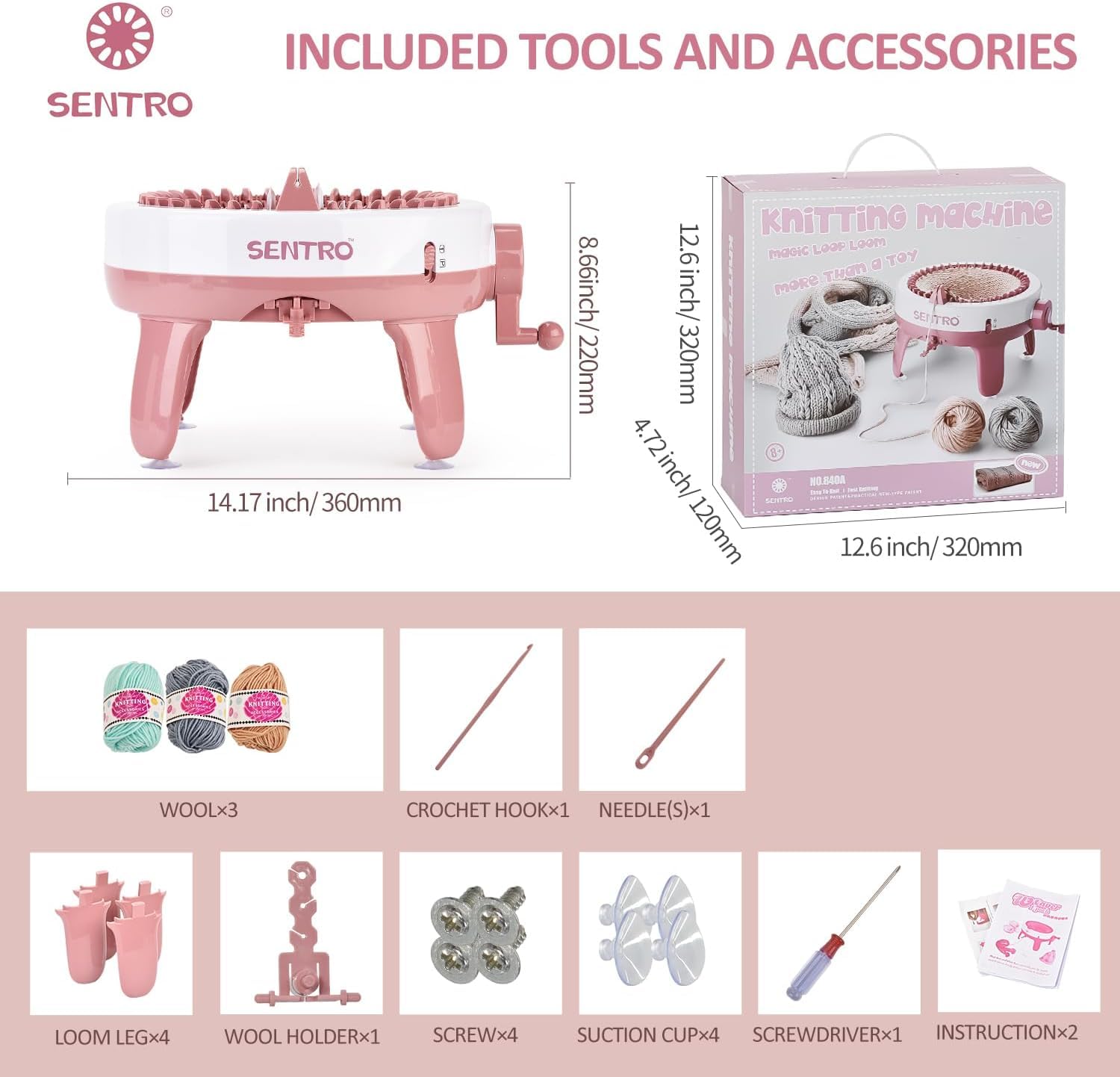 - Delights of knitting: The SENTRO knitting machine 40 needle Perfect for beginner knitters,Create a flat or round stitch in seconds with hand crank .Just thread the weaving loom yarn into the spindles and turn the crank to knit your very own masterpieces while developing your hand-eye coordination.Suitable for children over 12 years of age.