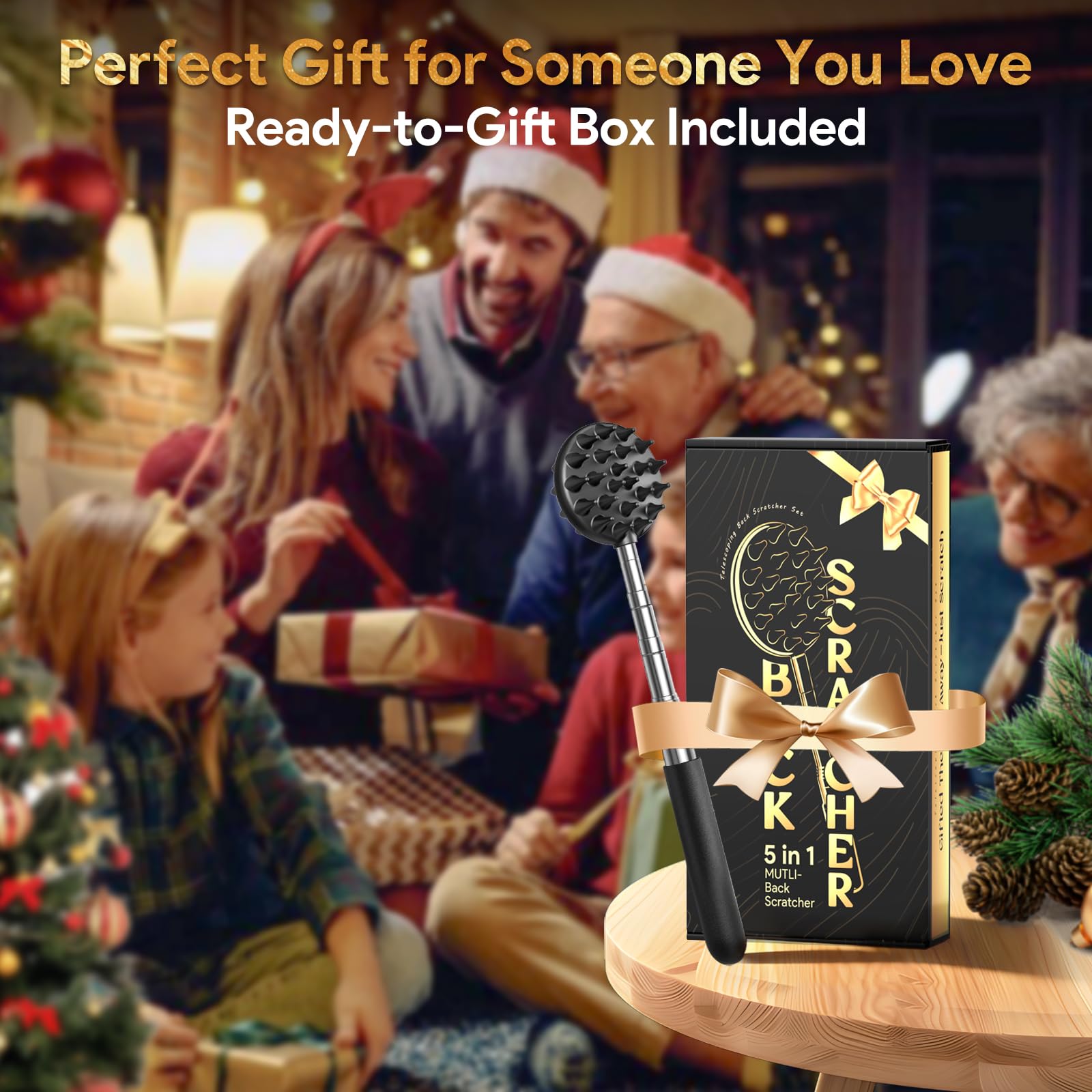 - Perfect Gift Ready: Beautifully gifted box, no wrapping needed. This 5-in-1 back scratcher includes 5 detachable heads for back, neck, scalp, and beard. Great as Christmas gifts, stocking stuffers, or White Elephant presents for anyone