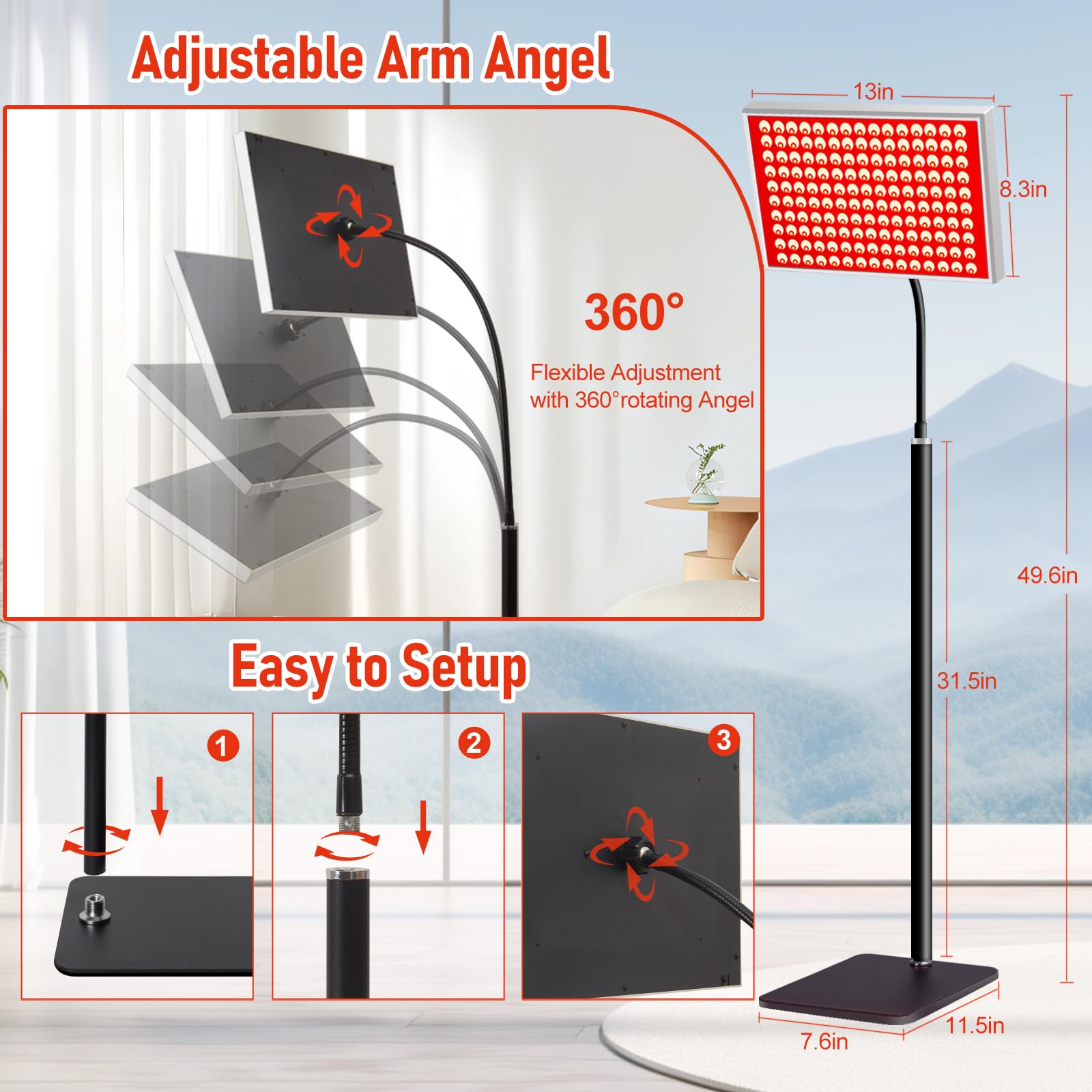 • ✅【Easy Setup with Flexible 360° Adjustable Design】Designed for convenient home use, this therapy lamp features a flexible gooseneck and 360° rotating head. Whether standing, sitting, or lying down, you can easily adjust the light for targeted coverage—no tools needed.