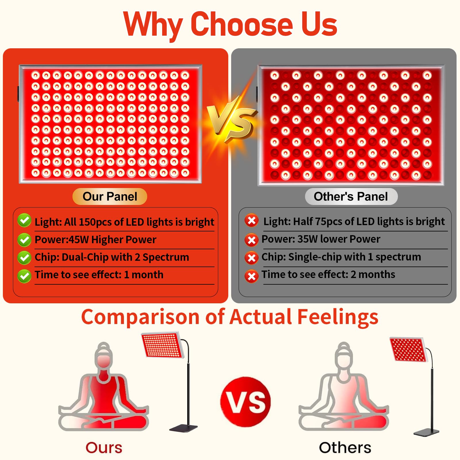 Tuohun Red Light Therapy for Face and Body – 150 LED, 660nm Red & 850nm Near Infrared Lamp with Adjustable Stand, Dual Wavelength for Skin, Muscle & Joint Recovery | Home & Professional Use