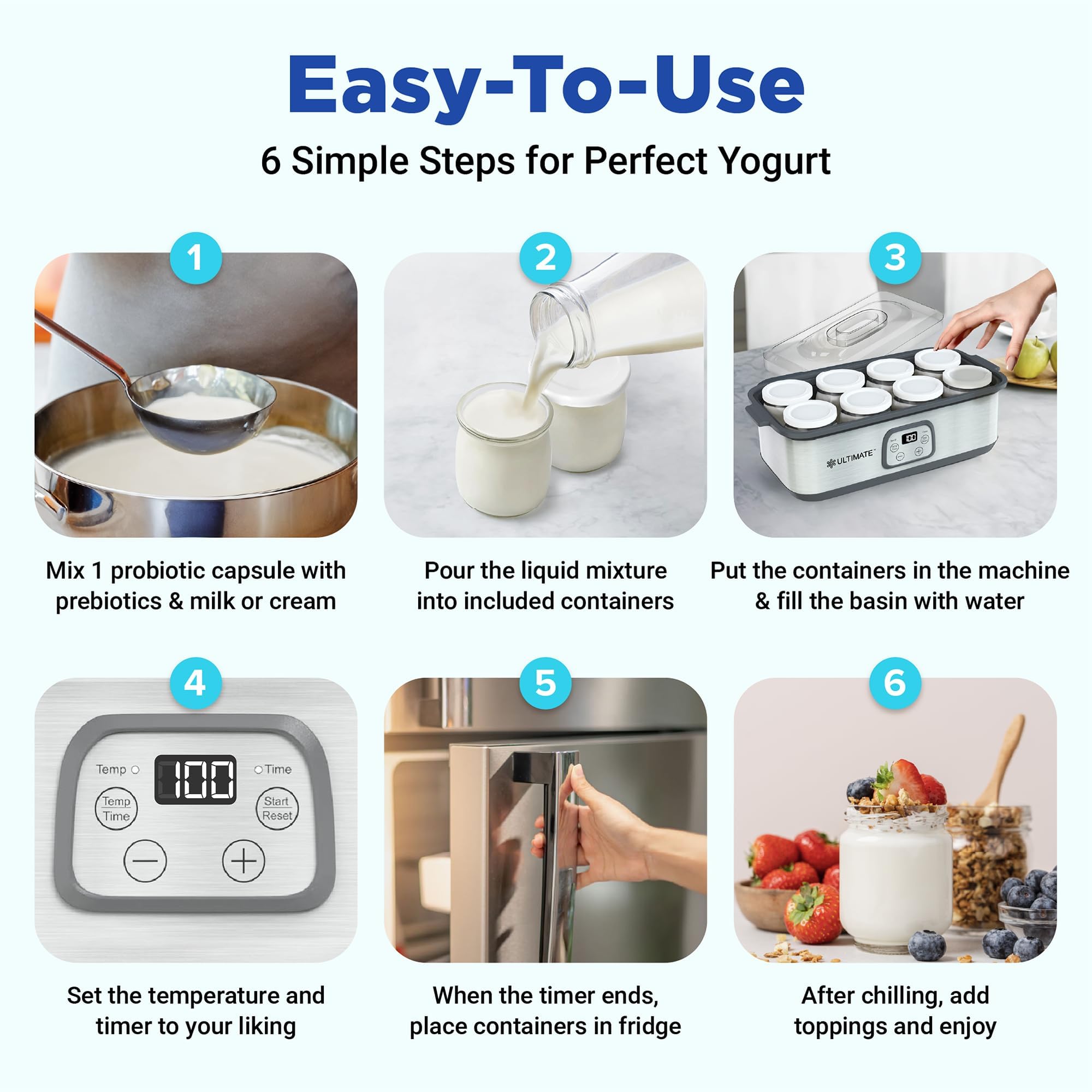 - 𝗠𝗮𝗸𝗲 𝗣𝗿𝗼𝗯𝗶𝗼𝘁𝗶𝗰𝘀 𝗧𝗵𝗮𝘁 𝗠𝗮𝘆 𝗦𝘂𝗽𝗽𝗼𝗿𝘁 𝗪𝗲𝗶𝗴𝗵𝘁 𝗟𝗼𝘀𝘀, 𝗖𝗼𝗹𝗹𝗮𝗴𝗲𝗻 𝗙𝗼𝗿𝗺𝗮𝘁𝗶𝗼𝗻 & 𝗘𝗻𝗲𝗿𝗴𝘆 – Probiotics have an abundance of benefits. With the Ultimate Probiotic Yogurt Maker, you can culture trillions of high-quality probiotics which may support your gut health & microbiome which may support weight loss, reduced inflammation, improved energy, and improved mood.